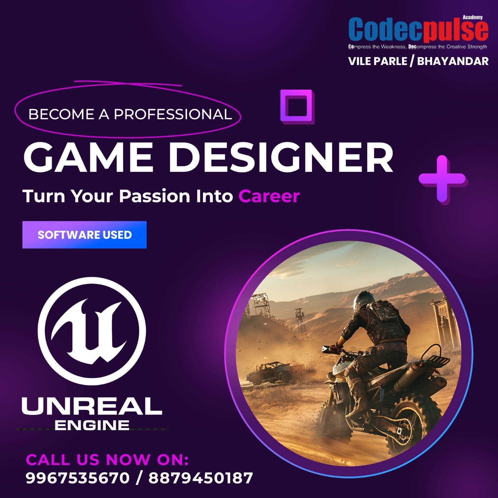 Become a Professional Game Designer Turn your passion for gaming into a career with professional training at Codecpulse Academy. Learn game design using Unreal Engine and build skills in: • Game Development Basics • Level Design • 3D Environment Creation • Game Mechanics • Interactive Design Ideal for students interested in game development, 3D design, animation, and the gaming industry.